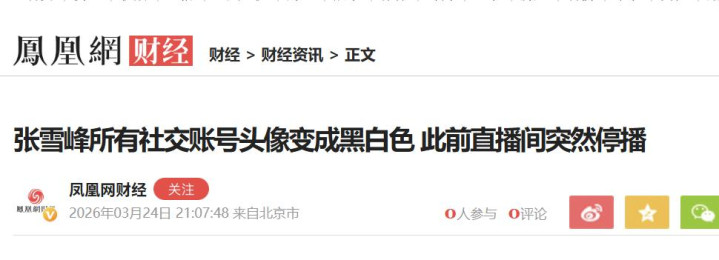 《张雪峰外交账号头像、配景变成吵嘴 关联直播间集体停播》,凤凰网