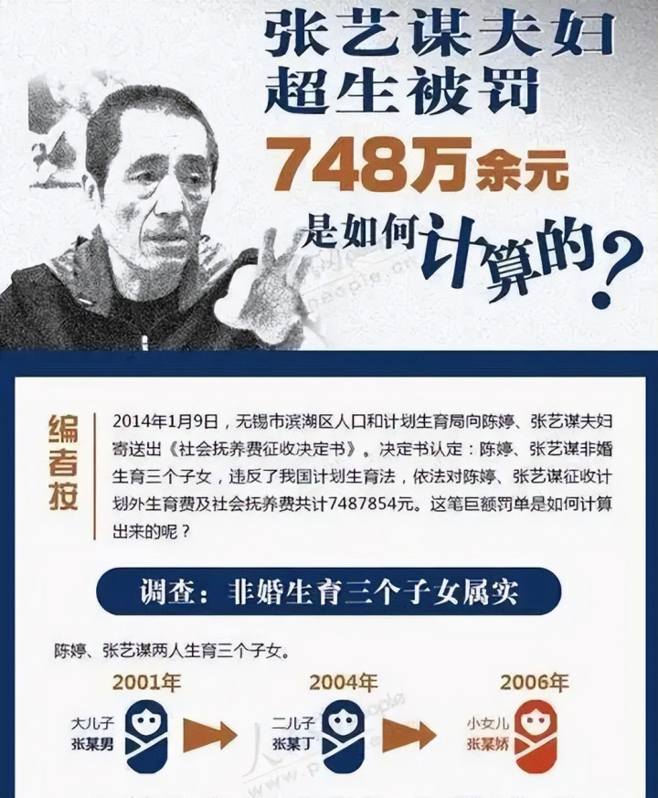 其时关系部门认定张艺谋违抗了决议生养战略,最终开出了748万元的罚金单。