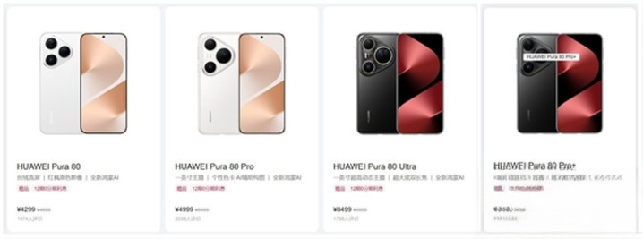 华为Pura80系列四款机型 · 呈现四款机型外不雅及售价信息