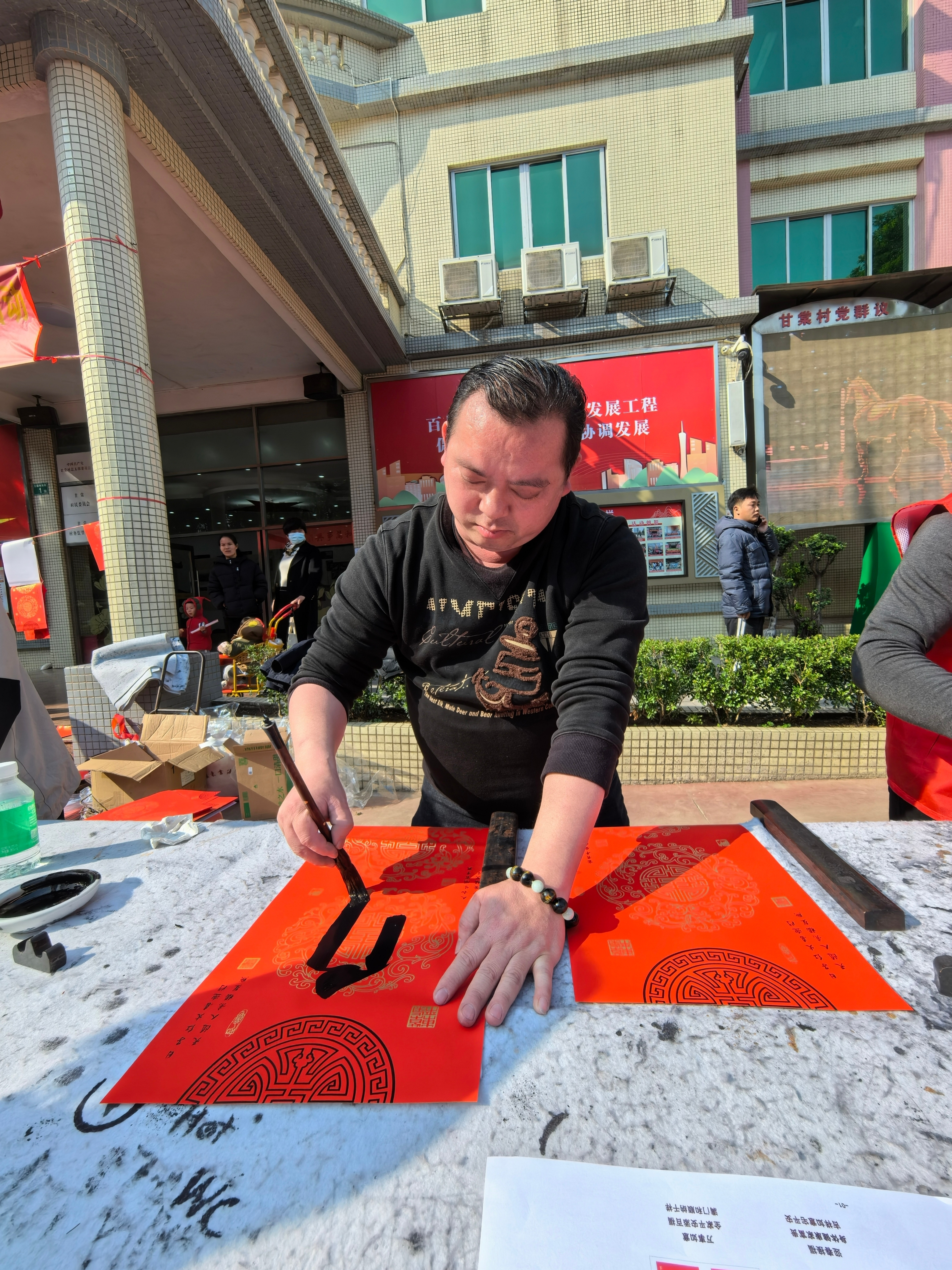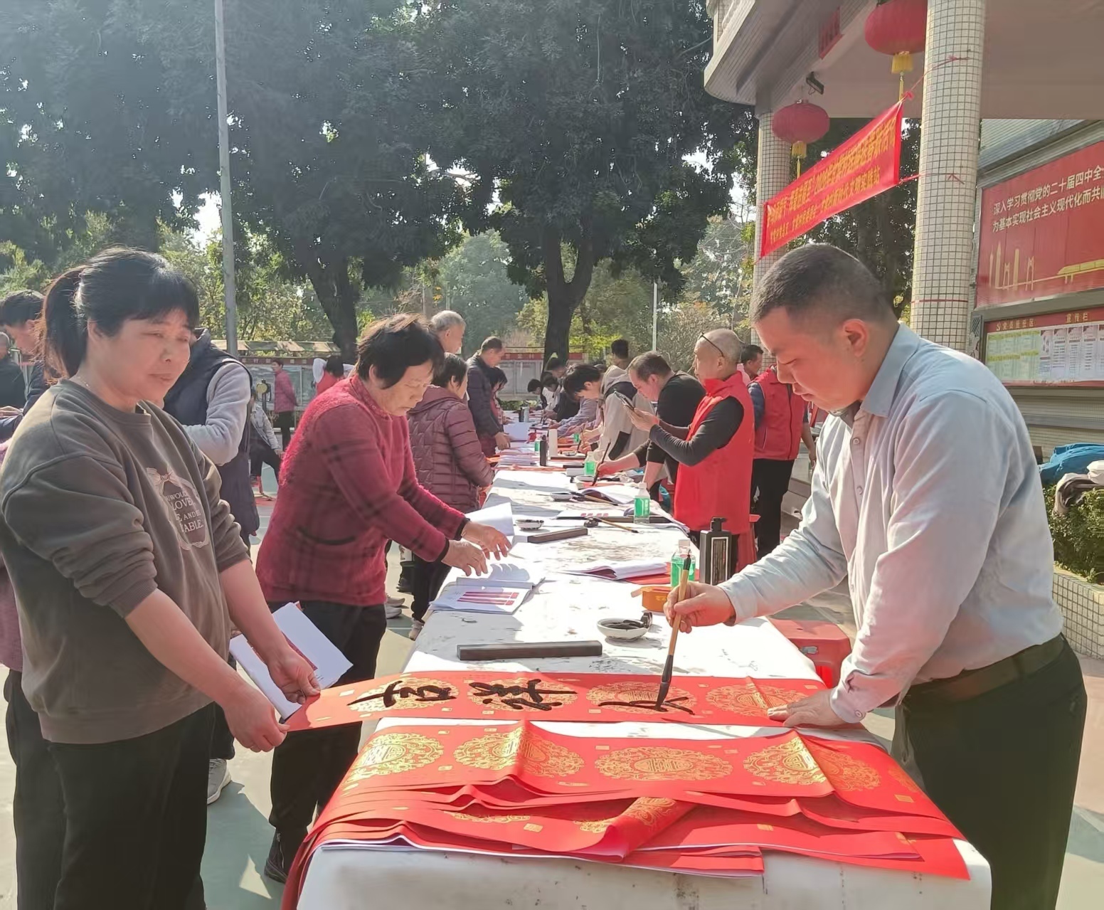 金年会官网首页入口 墨香暖东说念主心,对子进万家!番禺东环街甘棠村开展“送福下乡”文化惠民看成