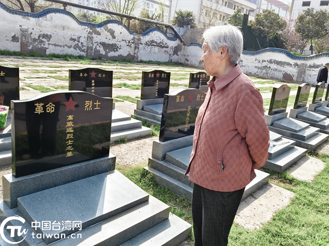 台属高女士在其老迈(义士)的墓前久久伫立,深情顾虑。(中国台湾网发)