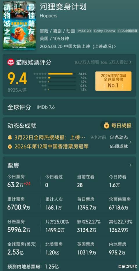 内地票房放在春节档真的不算什么,但在脚下这个档期,成绩相配可不雅。并且,这部电影也曾斩获了2.53亿好意思元(折合东谈主民币约17.4亿)的大师总票房。
