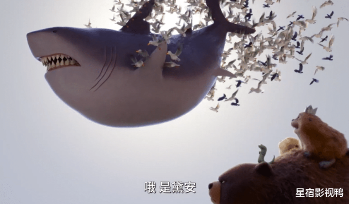 鲨鱼戴安被鸟群托举着飞向天外,亮出一口尖牙,却用尖细的嗓音柔柔的安抚行将被“作念掉”的市长“会有少量刺痛哦,很快为止”。