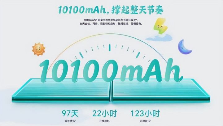 上一代X9配的是8300mAh的电板,此次X10告成给怼到了10100mAh!初学级平板,上万毫安时的电板。