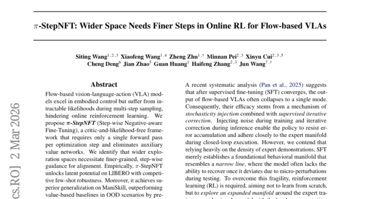 这种探索式学习的重要在于"箝制探索的幅度"。探索规模太小,机器东说念主学不到新东西;探索规模太大,机器东说念主可能完全偏离正确场地。π-StepNFT通过奥妙的数学设计确保探索耐久围绕着正确的场地进行。